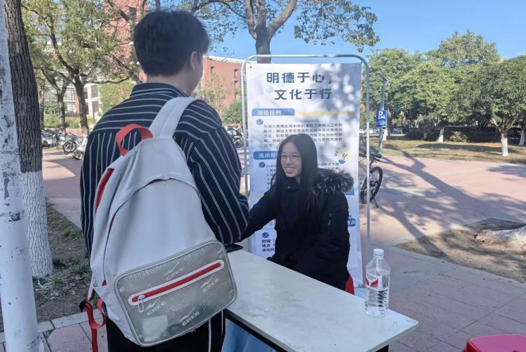 (通讯员 秦梓迪/文 杜晓岚/摄)为深入贯彻落实立德育人的工作指示同时推动我校学生全面发展,10月29日至11月1日,电子信息与电气工程学院在东、西校区分别开展了主题为“明德于心,文化于行”的中华优秀传统文化作品收集活动。