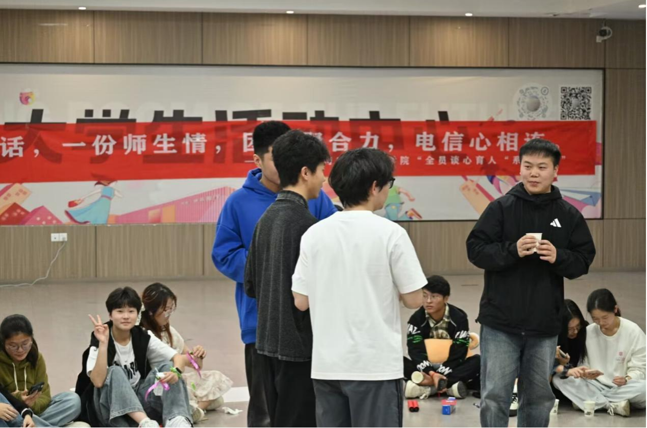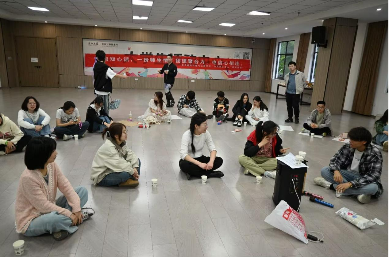 (通讯员 袁成雅/文 陶旭日/摄)为深入推进“全员谈心育人”工作,搭建师生面对面交流平台,凝聚育人合力, 4 月 11 日下午,电信学院在东校区未来客厅二楼温情开展“一句知心话,一份师生情,团建聚合力,电信心相连”活动。学院党委副书记张晨露,辅导员颜国琼、康玮、沈马锐、李蒙、邓兴勇等六位老师与学院学生代表欢聚一堂,以茶话会为纽带,谈心交流、互动游戏、共话成长,在轻松温馨的氛围中传递关怀、凝聚温情。