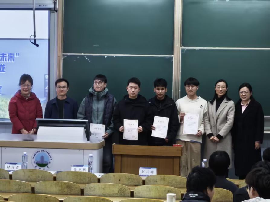 活动最后,与会老师为同学颁发了荣誉证书。获奖同学与老师们在讲台前合影留念,定格了这一学术交流的高光时刻。随着快门声响起,本次“信创赋能 建享未来”研究生跨学科学术沙龙圆满落下帷幕。此次活动不仅展示了长江大学研究生的学术风采,也为不同学院之间的学术交流与合作奠定了良好的基础。