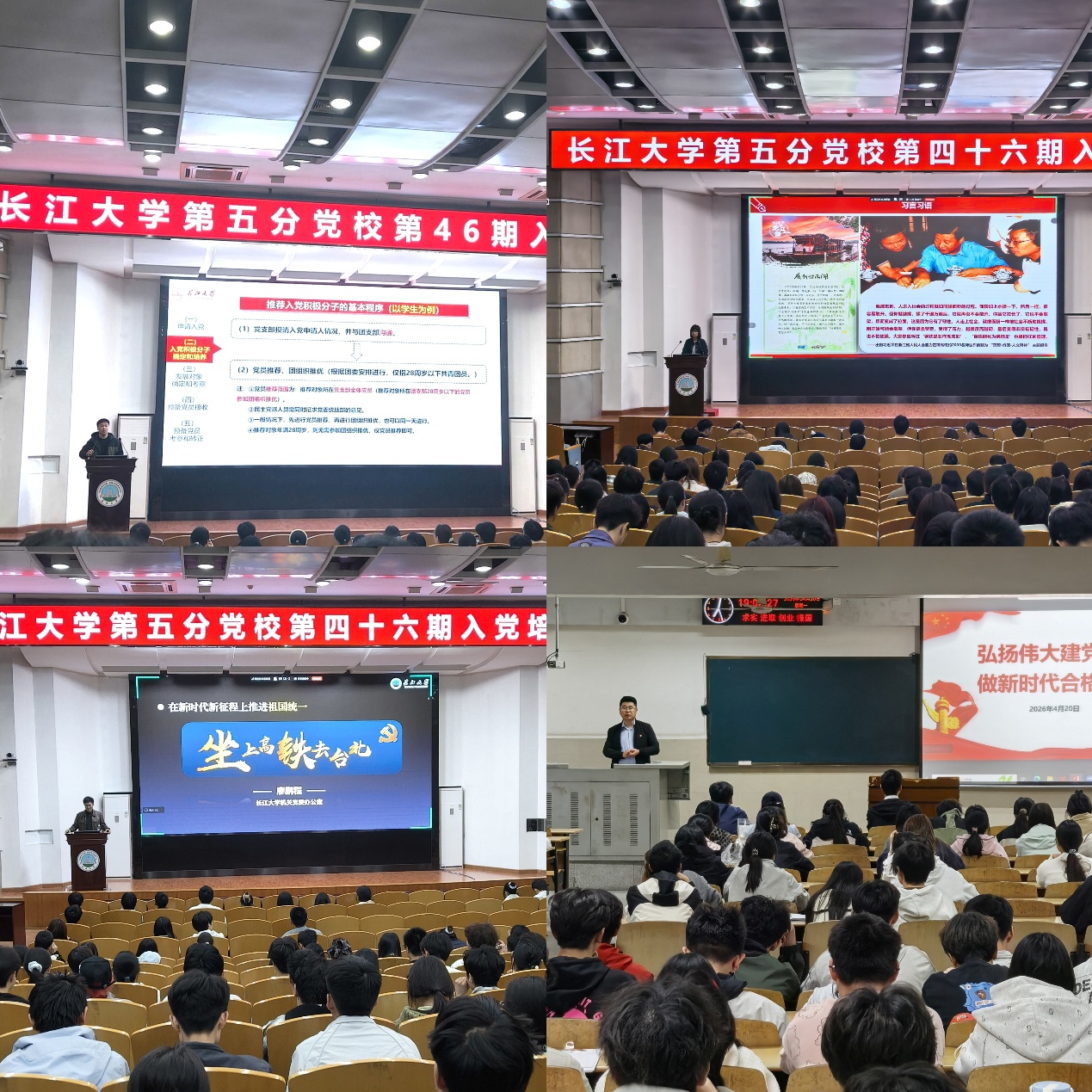 为深入学习贯彻党的创新理论,进一步做好入党积极分子、发展对象和预备党员的教育培训工作,长江大学第五分党校于4月1日起举办了第46期入党积极分子、发展对象、预备党员培训班。本次培训以集中授课为核心,融合视频观学、交流研讨、实践锻炼与课外自学等多元形式,引导学员坚定理想信念、严守纪律规矩、勇担时代使命。