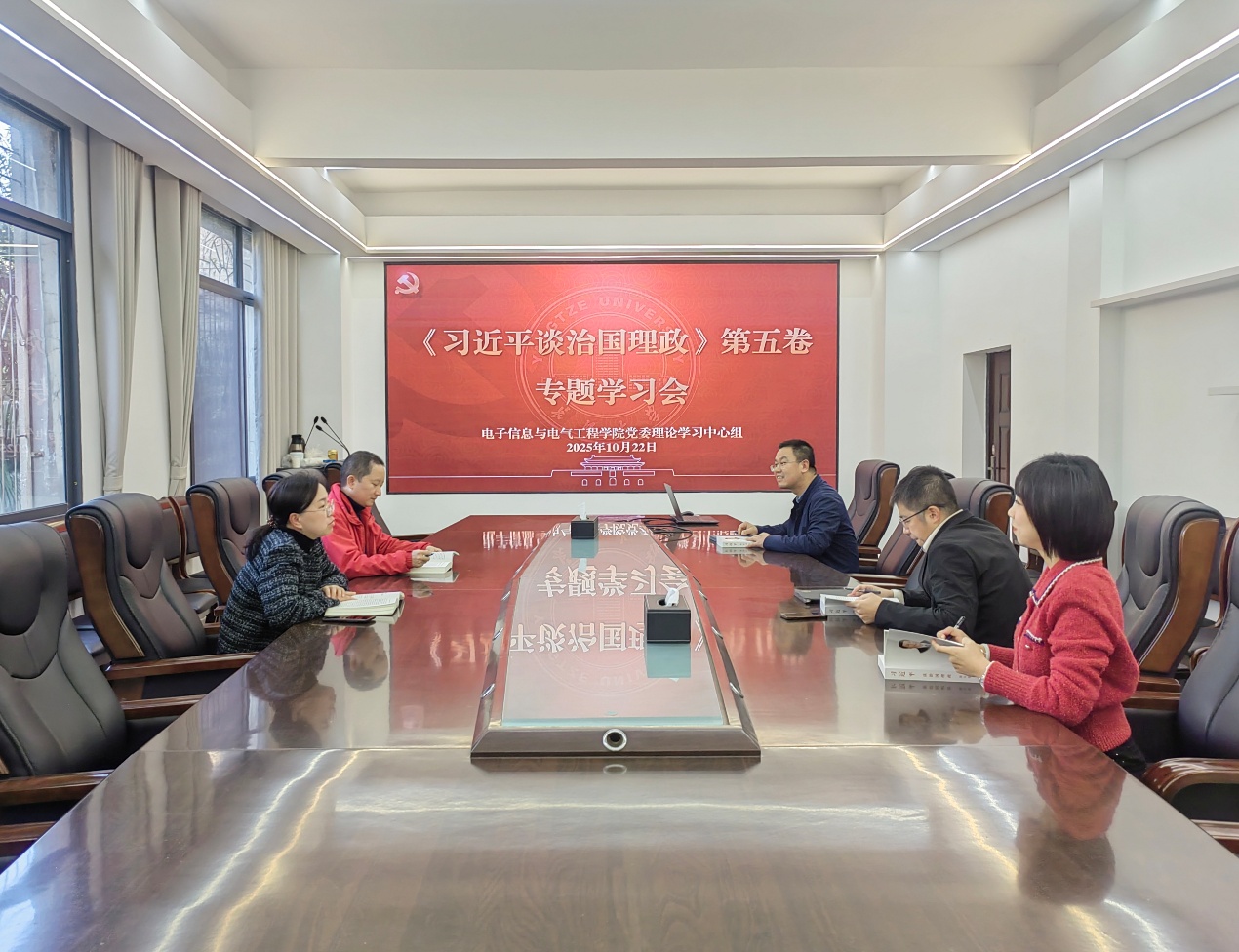 10月22日上午,电子信息与电气工程学院党委理论学习中心组在10教205会议室开展《习近平谈治国理政》第五卷专题学习,郭梅主持学习会。