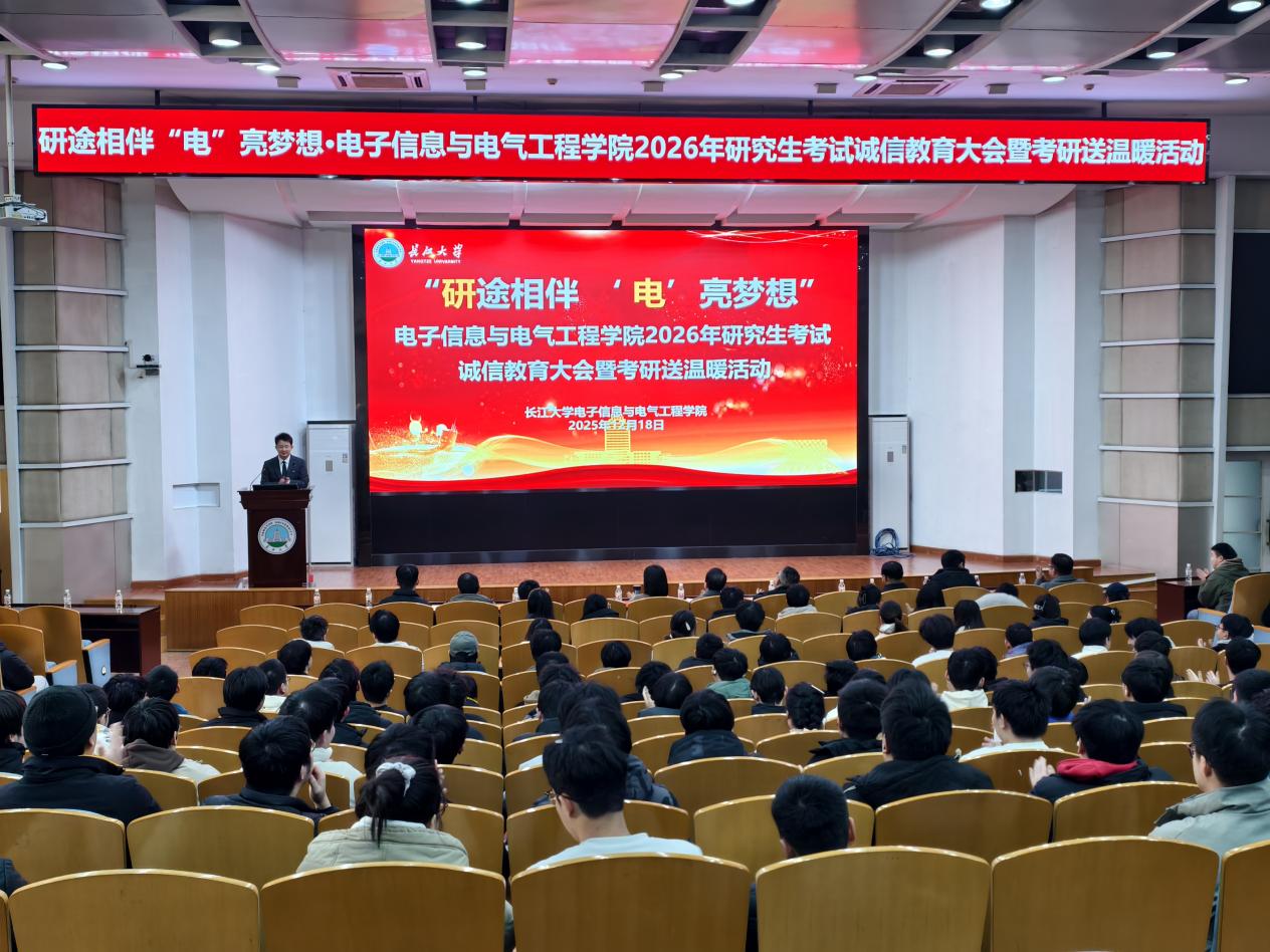 (通讯员 沈马锐 周小羽)研途相伴,“电”亮梦想。为强化2026届考研学子诚信备考意识,缓解备考压力,近日,学院为考研学子精心举办“研途相伴,‘电’亮梦想”诚信考试教育大会,并同步开展系列考研送温暖活动,为学院考研学子保驾护航。