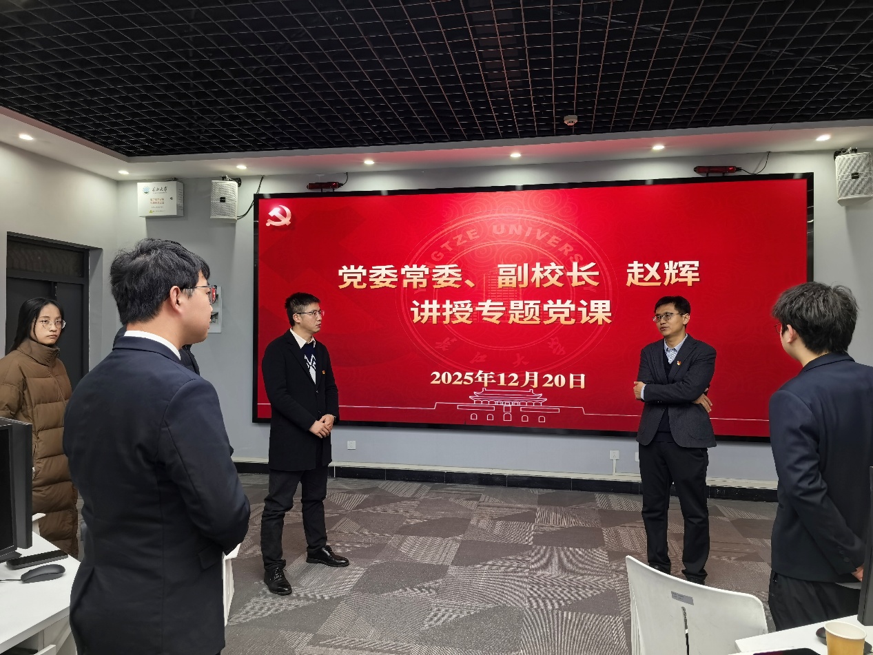 (通讯员 邓兴勇)为持续深入学习贯彻党的二十届四中全会精神,12月20日,党委常委、副校长赵辉在武汉校区智能油藏开发研究所为电子信息与电气工程学院油气信息探测与仪器装备团队研究生党支部讲授专题思政课,勉励学子以智能驱油气以实干践担当。