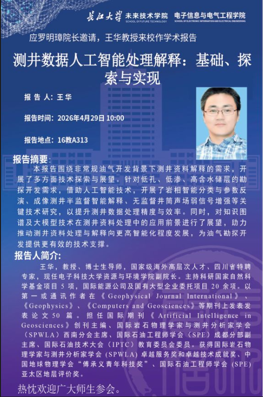 电子信息与电气工程学院2026年学术报告(三):测井数据人工智能处理解释:基础、探索与实现